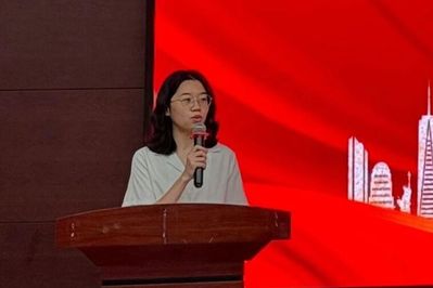紧接着,李倩老师代表院团委发表了讲话。她详细介绍了即将出征的九支校级重点团队,这些团队将从扬州的“国家水网建设”到杭州的“返家乡”实践,从智能建造调研到乡村振兴服务,遍布祖国各地。李老师的话语中透露出对这些团队的骄傲和对青年以青春为中国式现代化挺膺担当的肯定。