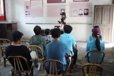 工作人员为实践团讲解胥锦抗日往事