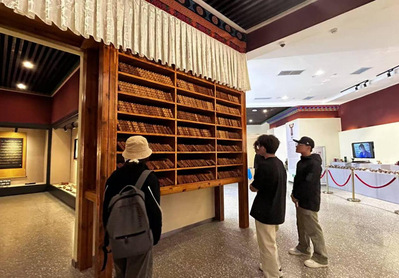 唐卡画师丹增在展馆内绘制《药师佛》佛像唐卡,详解青金石、朱砂、真金粉等矿物颜料的来源,介绍中等唐卡 3个月的绘制周期及10天的矿石研磨耗时。展柜中清代老唐卡与丹增新作并列陈列,通过技艺讲解与实物对比,队员清晰看到唐卡技艺在时光中的延续脉络,理解传统技艺的代际传承逻辑。