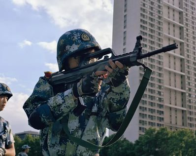 他们一个展现出瞄准时刻的专注果敢,一个彰显出匍匐前进的利落坚韧,两种姿态,同样的热血坚毅,在军训的战术训练中,把当代新生的朝气与军人般的执行力,都刻进了这迷彩与汗水交织的身影里。